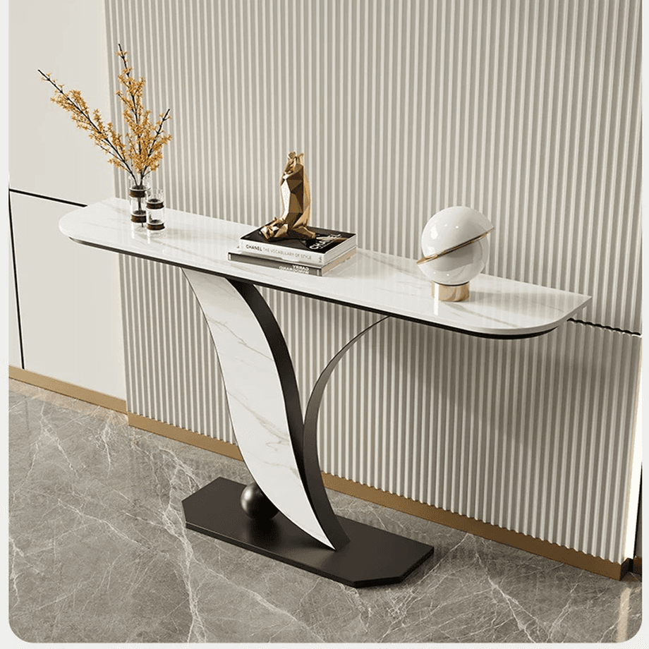 LUNA Luxury Marble Stone Console Hallway Table (Black)